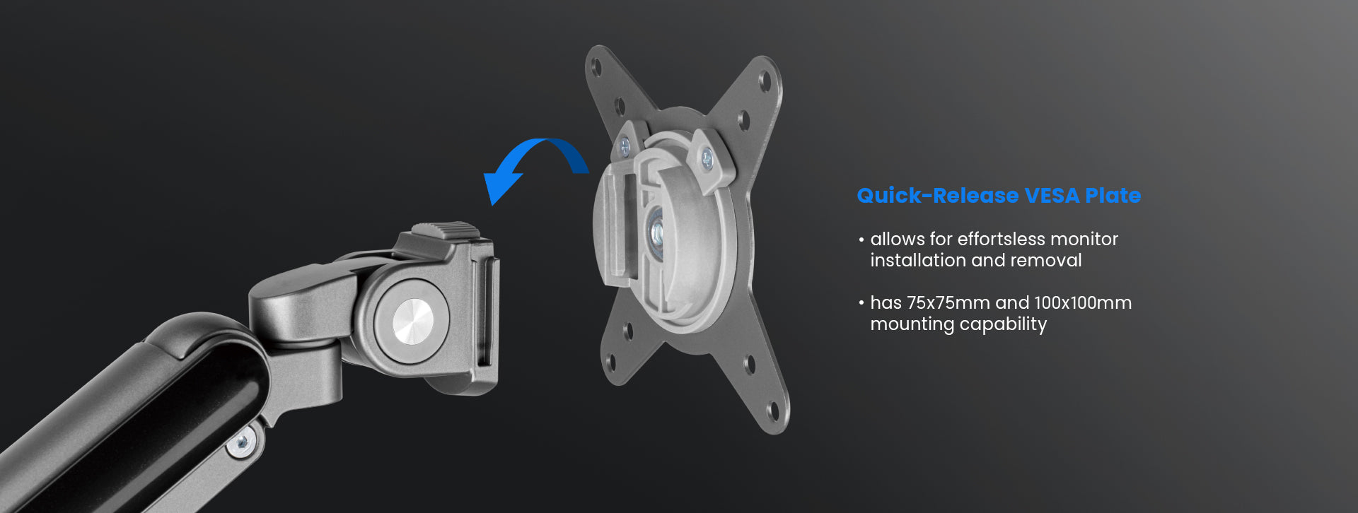 • Quick-Release VESA Plate: Simple, effortless installation and removal