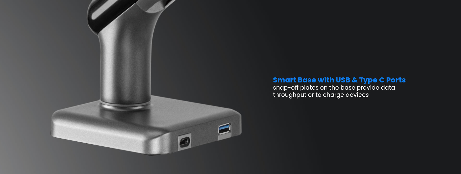 • Smart Base with USB & Type-C Ports: Provides data throughput or charging for devices