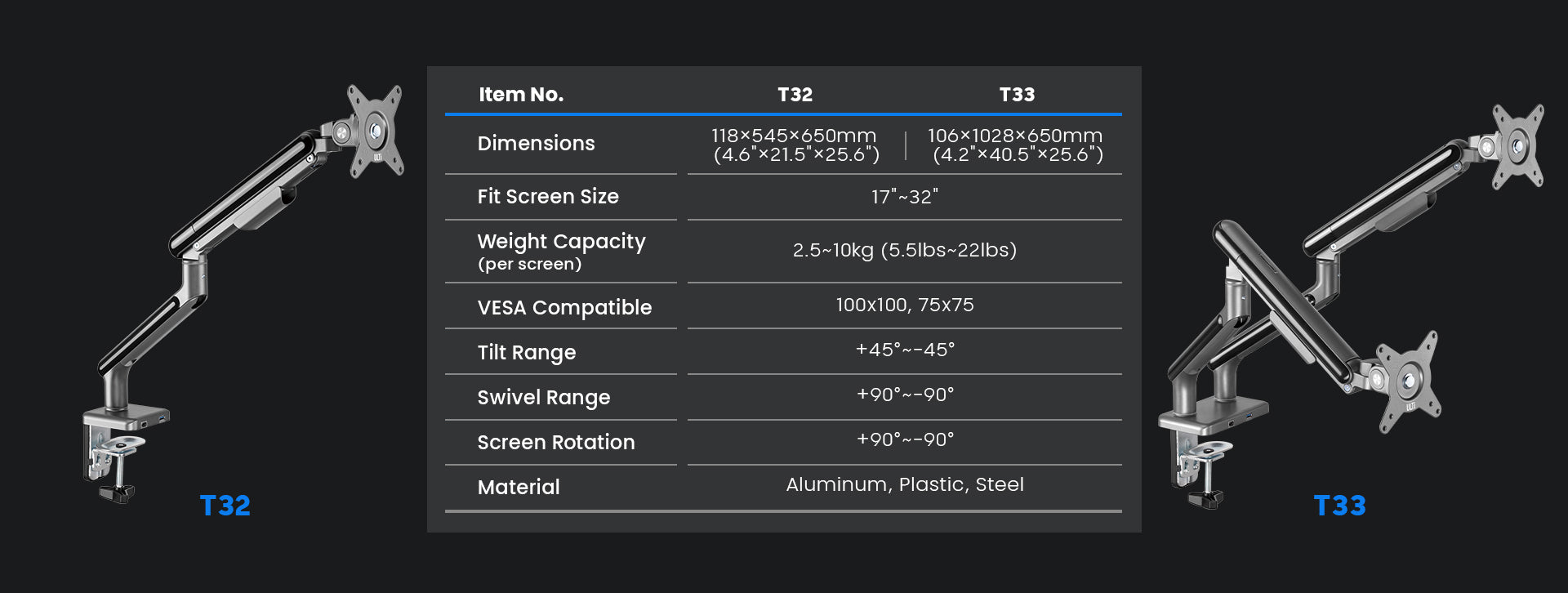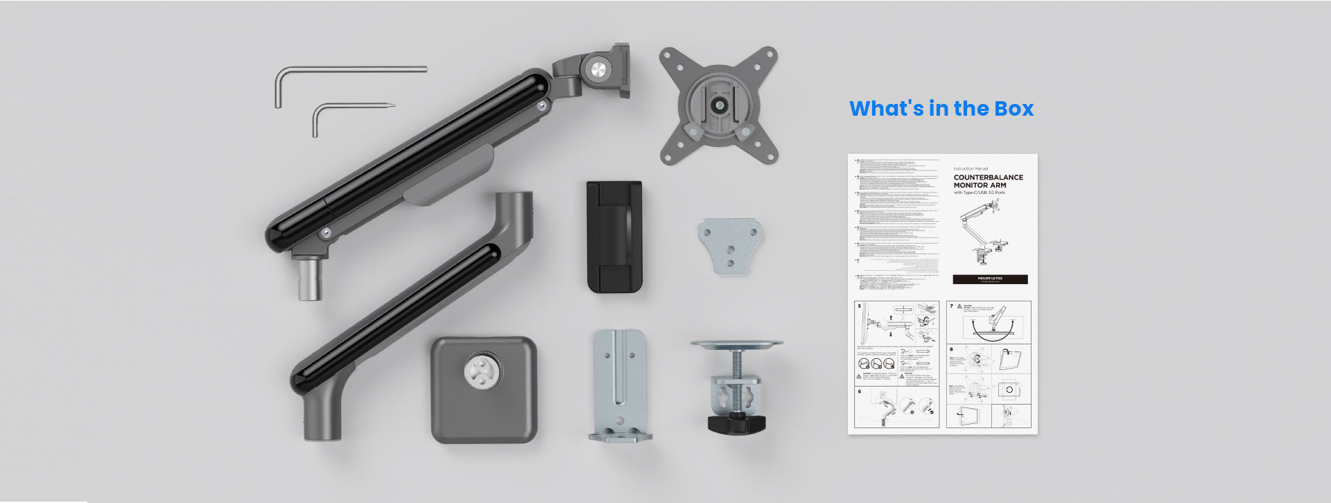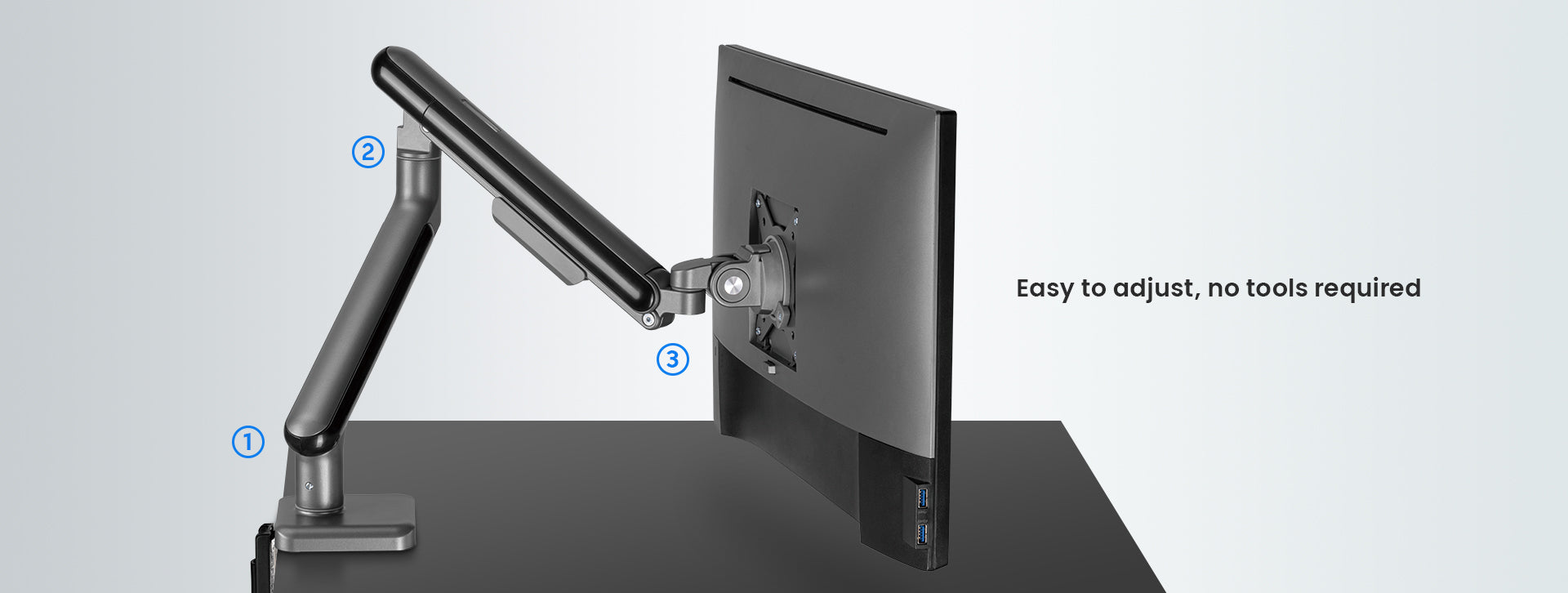 • Adjustable Spring Gauge: Ensures optimal weight balance for various monitors