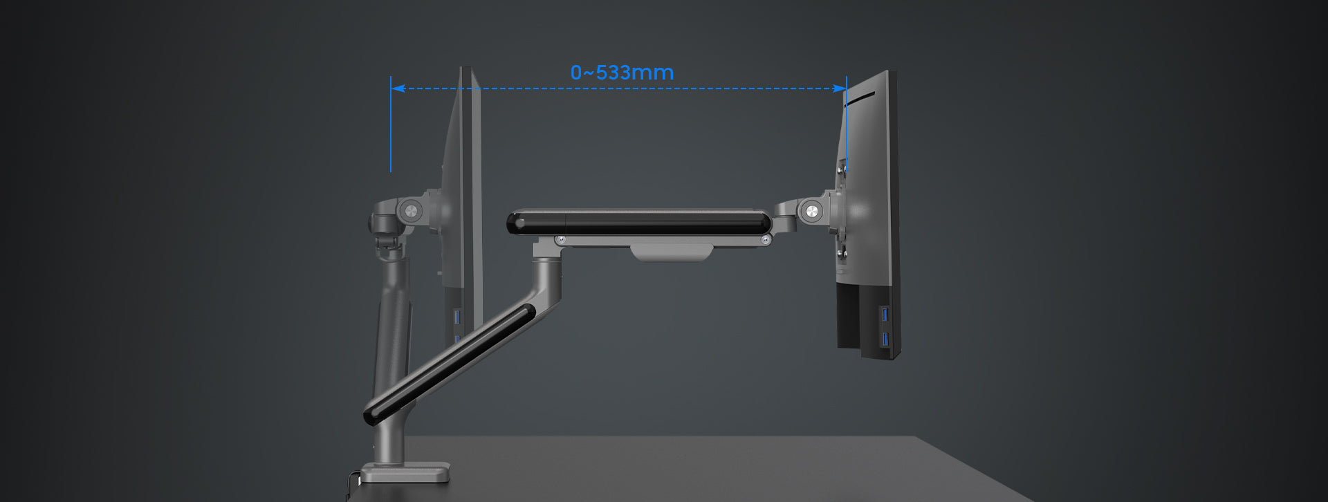 • Slim Spring-Assisted Design: Provides smooth, easy monitor adjustments