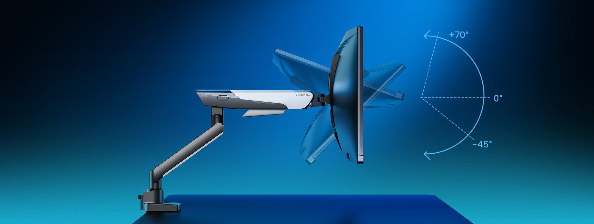 Articulation & Height Adjustment: Enjoy comfortable viewing angles with +70° to -45° tilt, 180° swivel, 360° rotation, and height adjustment along the center pole. Monitor can be placed in portrait or landscape orientation.