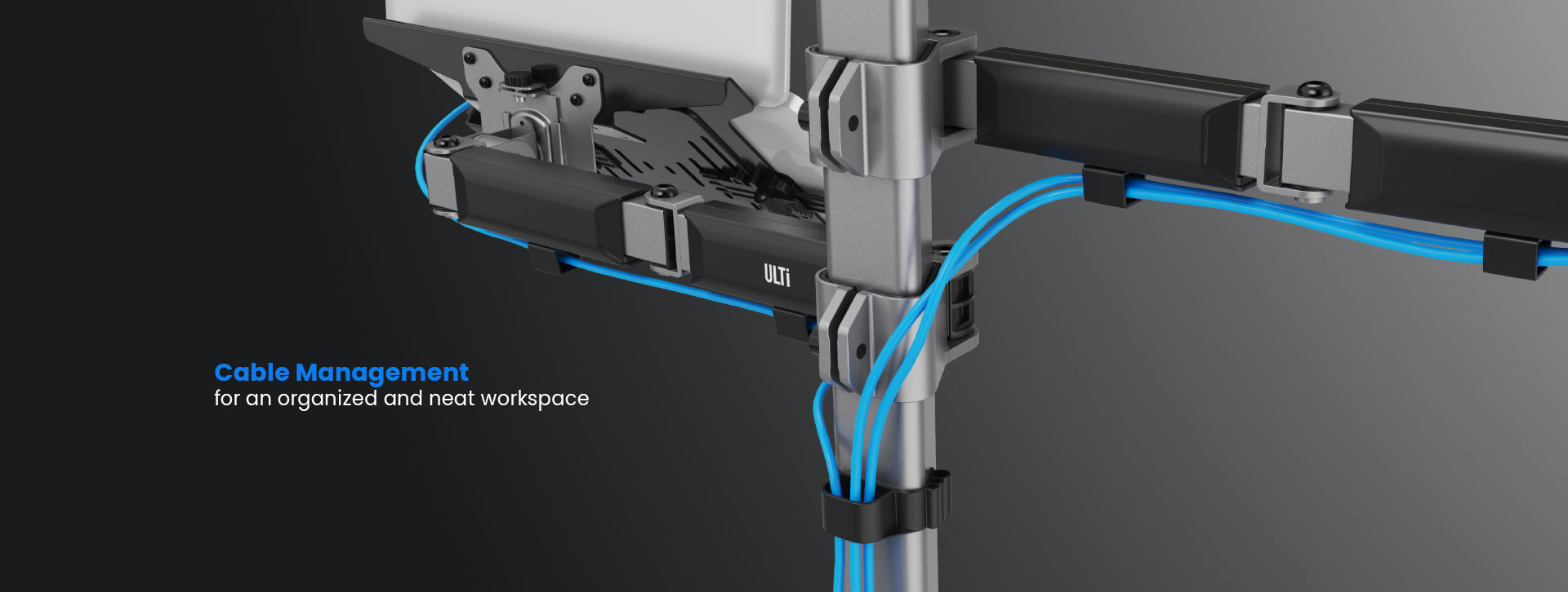 Integrated Cable Management: Keep your power and AV cables clean and organised with detachable cable clips on the arms and center pole.